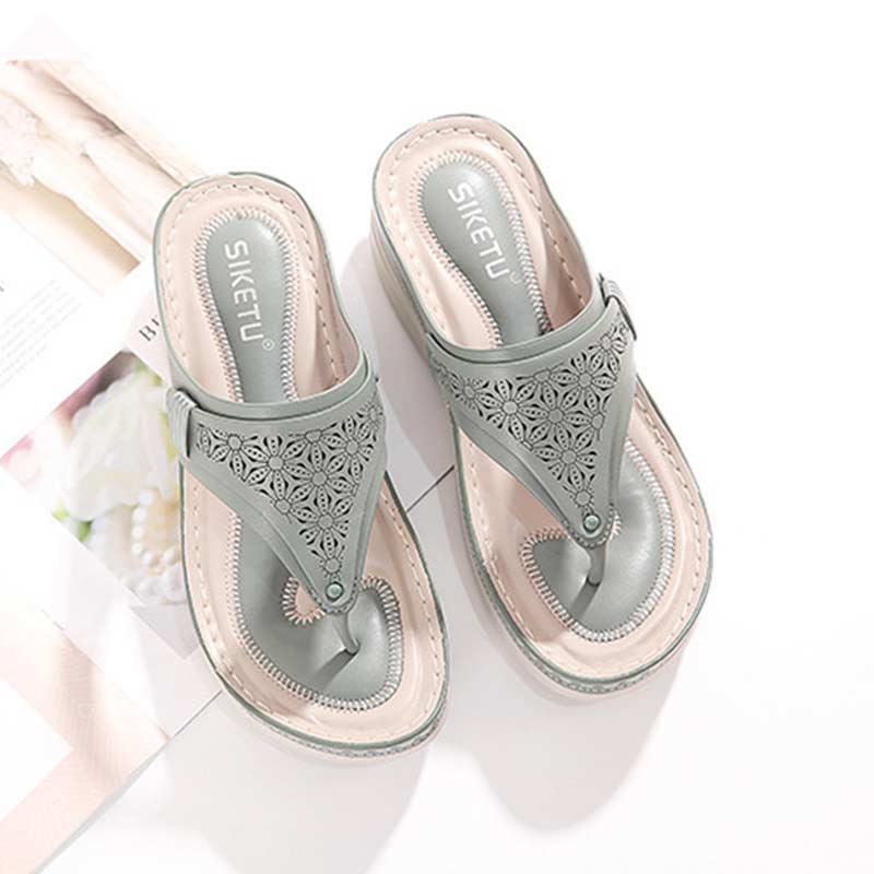 Lightweight Mid Heel Wedge Sandal – Green