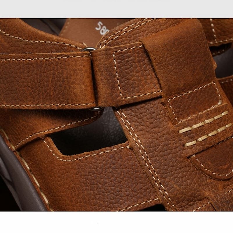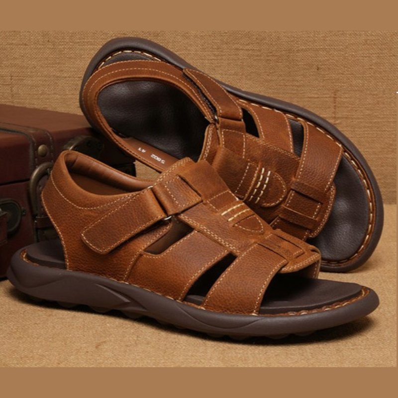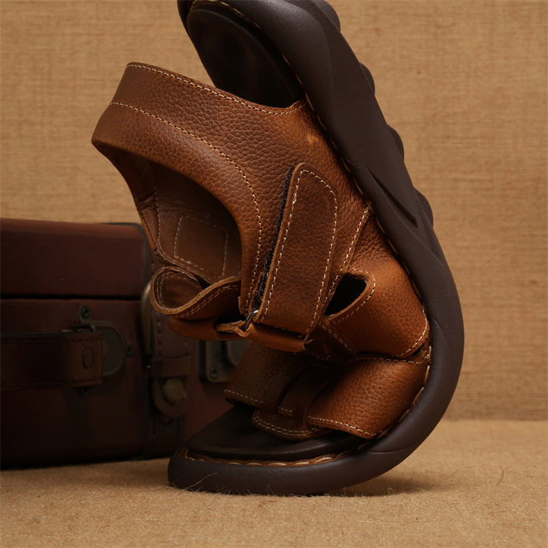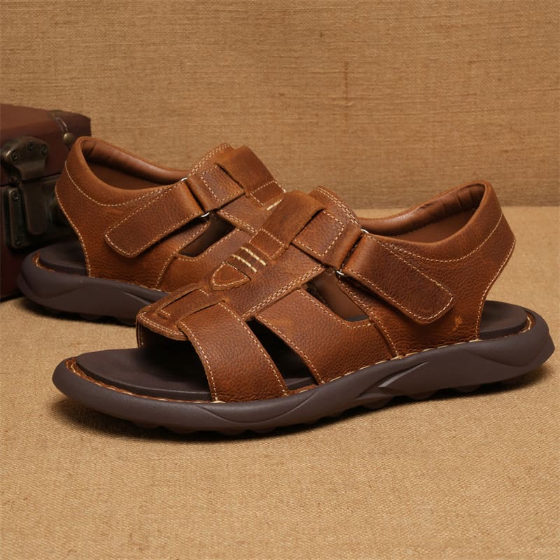 Open Toe Comfortable Leather Casual Sandal – Brown